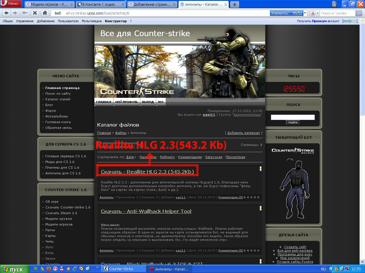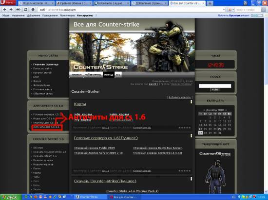 Здравствуйте сегодня я покажу Вам как качать с нашего сайта(all-cs-strikez.ucoz.com).Для начала зайдем допустим в Античиты для cs 1.6